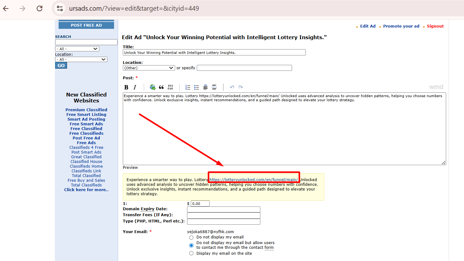 - Posting on high-traffic classified websites